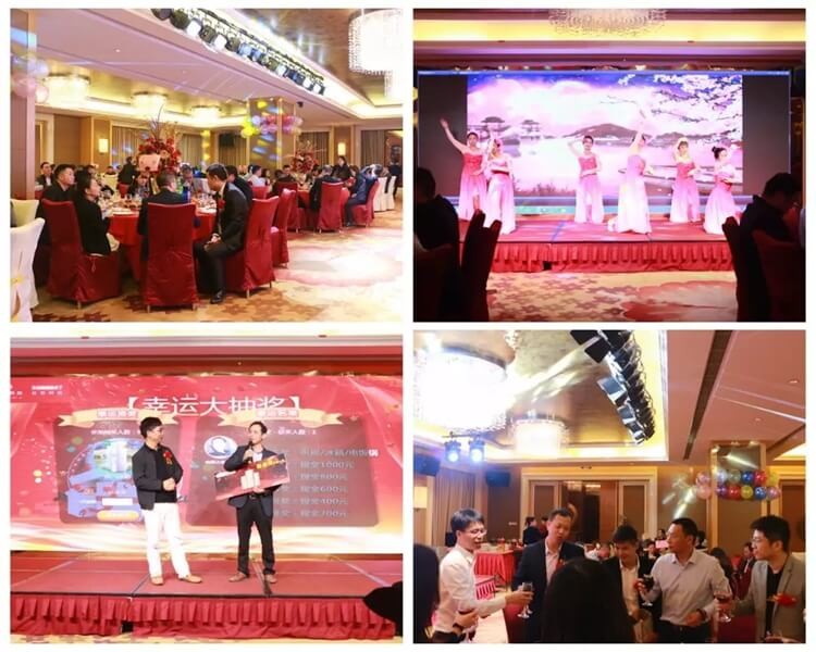 大會結(jié)束后,日東科技供應(yīng)商答謝晚宴在寶利來酒店宴會廳舉行,總經(jīng)理林曉新為2019年日東科技十大優(yōu)秀供應(yīng)商頒獎。晚宴上還準(zhǔn)備了精彩的舞蹈表演和激動人心的抽獎環(huán)節(jié),在2020新年即將到來之際,大家歡聚一堂,推杯換盞,其樂融融!