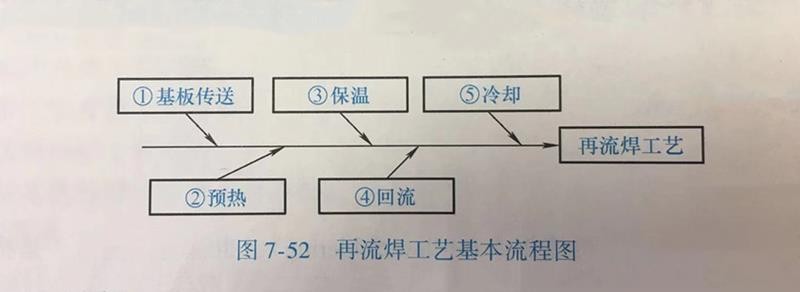 (3) 回流焊工藝的基本過(guò)程:一般的,一個(gè)完整的回流焊工藝基本流程需要經(jīng)過(guò)基板傳送、預(yù)熱、保溫、回流、冷卻等工序。