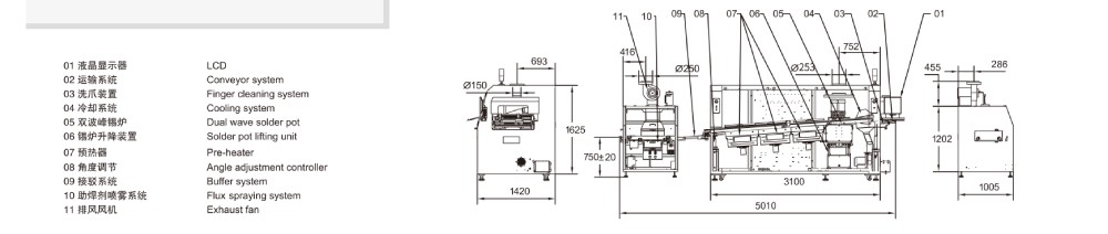 | 注:可定制4段預熱,溫區(qū)長度達2.3米 | |||
